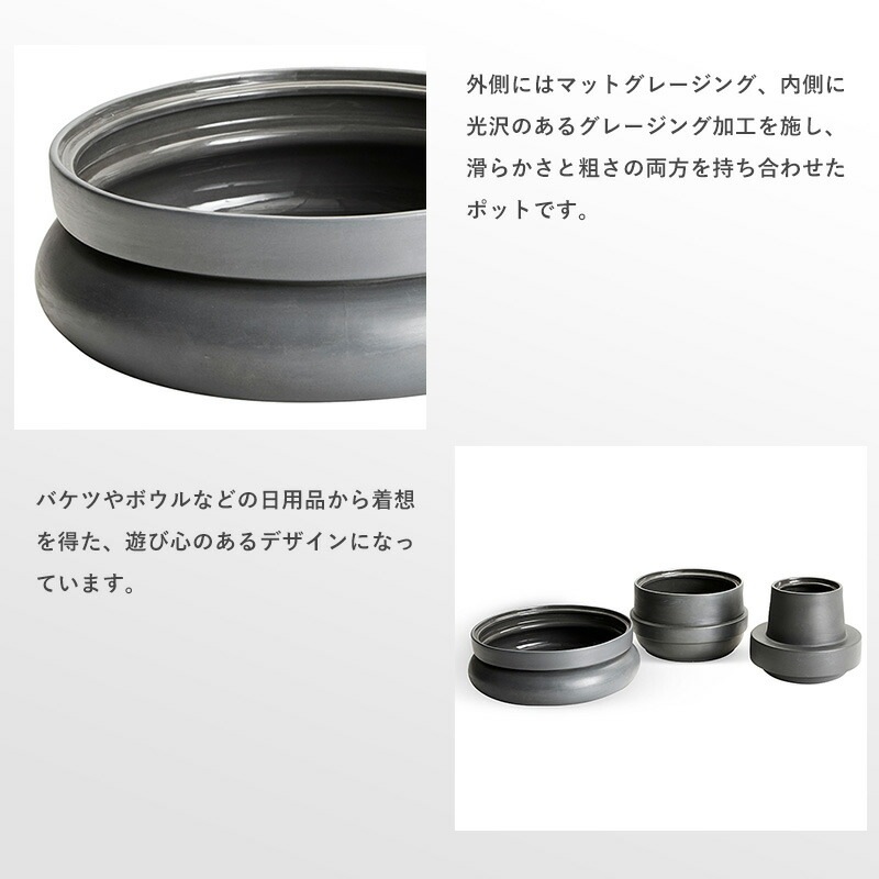 外側にはマットグレージング、内側に光沢のあるグレージング加工を施し、滑らかさと粗さの両方を持ち合わせたポットです。