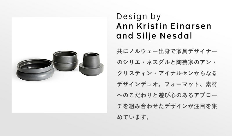 共にノルウェー出身で家具デザイナーのシリエ・ネスダルと陶芸家のアン・クリスティン・アイナルセンからなるデザインデュオ。フォーマット、素材へのこだわりと遊び心のあるアプローチを組み合わせたデザインが注目を集めています。