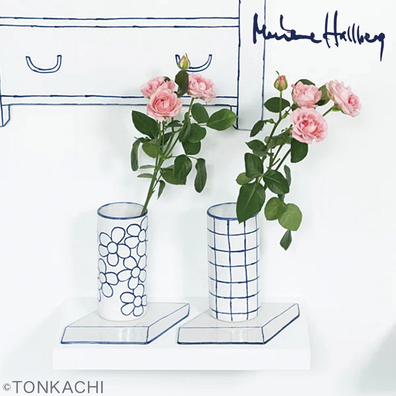Marianne Hallberg マリアンヌハルバーグ 台にのったようなかびん チェック 花柄 FP4 FP5