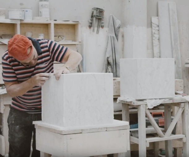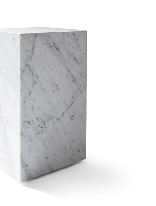 台座を意味する Plinth。 人の手を加えずシンプルに切り出した大理石は、2つとして同じ模様の ない究極の自然美。それは全てハンドメイドで加工され、その丁寧な仕事 ぶりはなめらかに仕上げられたエッジひとつを取ってみても明らか。