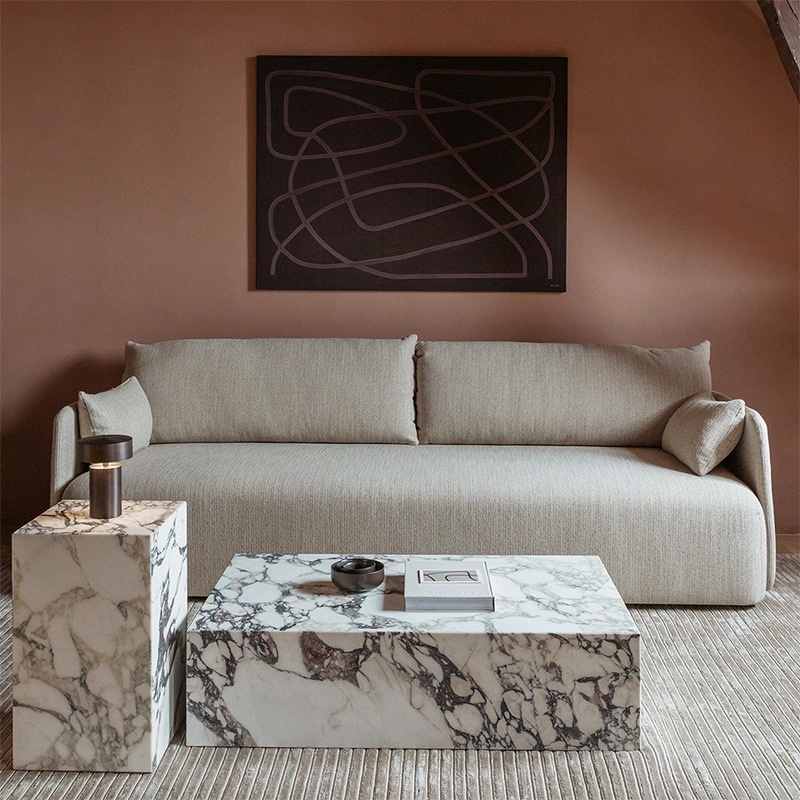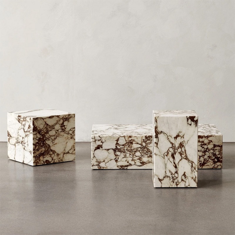 台座を意味する Plinth。 人の手を加えずシンプルに切り出した大理石は、2つとして同じ模様の ない究極の自然美。それは全てハンドメイドで加工され、その丁寧な仕事 ぶりはなめらかに仕上げられたエッジひとつを取ってみても明らか。